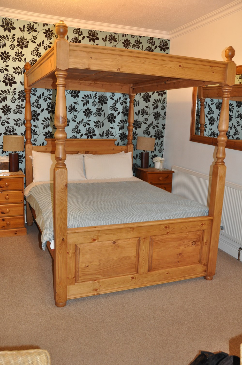 Double En suite roomsThe downstairs double room has a comfortable Chatsworth 4 poster bed and a refurbished en-suite. The upstairs double room is a quiet room situated at the rear of the house